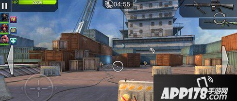当我们进入游戏后,敌人会从面前的两个集装箱的两边出现,也就是有三个出口,在前期我们可以不用太管敌人,我们可以对前方的掩体进行攻击,为接下来的战斗带来便利。