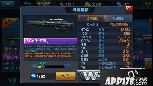 梦魇是目前射速最快的狙击枪,连射手感类似于突击步枪,在连狙里SCAR-梦魇的伤害是绝对一等一的,相对于SCAR-PR来说PVP实战伤害高出了近一倍,PR更像一把慢射速高精准的突击步枪,梦魇则是一把高射速的狙击枪。