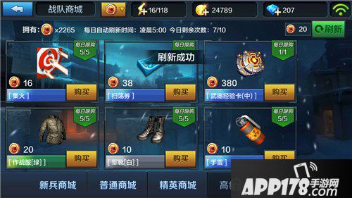 全民突击的商城有好几个,如挑战商城、对战商城、战队商城等。除了需要花金币和钻石的商城不要去外,其他的每天把相应的商城币刷满后就去晃晃。里面有0元党所需的一切。当然由于货币有每天的获取上限,因此最好用在佣兵碎片和S枪的碎片上。