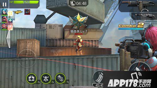 第二波会刷出大量的冲锋兵,敌人的后方还有手雷兵和狙击手,这里我们直接使用手雷,之后使用机关枪将残血的敌人一一点杀即可。