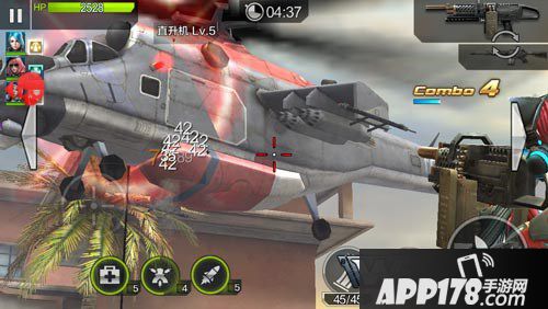 之后敌人会出动直升机,这里我们直接使用集火,并且换上高射速的机关枪射击,配合佣兵在最短的时间内将直升机摧毁。