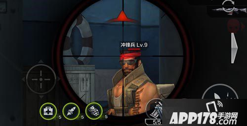 进入关卡后就会刷出大量的冲锋兵,由于有爆头5个敌人的三星条件,这里我们可以使用高精准的狙击枪来瞄准敌人头部射击,争取第一时间完成爆头任务。