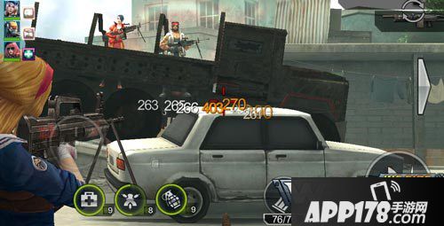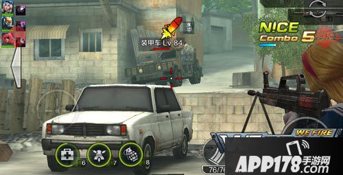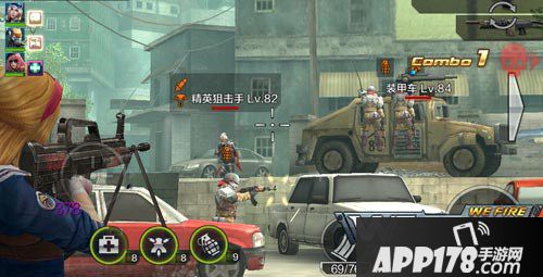 进入关卡后就有一辆运兵车驶过,这里我们直接使用集火同时进行扫射,就可以将运兵车摧毁了,同时大家要注意躲避后方精英怪黑狗的攻击。