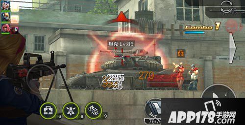 最后一波就会出现血量超高的坦克了,相信这时大家已经完成了爆头任务了,直接使用集火和佣兵技能,同时自己换上高弹夹的机关枪尽情扫射吧,直接将坦克摧毁,剩余的小怪可轻松解决。