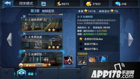 要想三星通关,手游宝小编建议选择武器机关枪加狙击枪,机关枪完成连杀,狙击枪爆头。