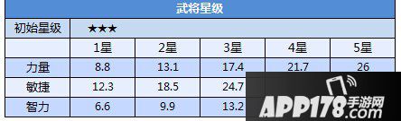 武将星级越高,三围属性成长越快。