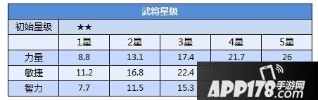 武将星级越高,三围属性成长越快。