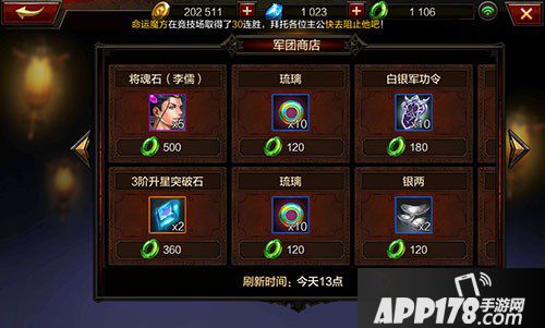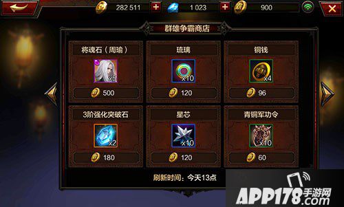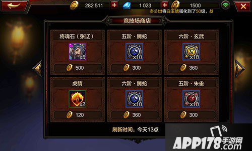 竞技场货币商店,有张辽的将魂石、附魔材料和符文等