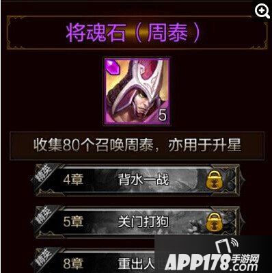 2.征战精英关卡可以掉落将魂石。分别为:精英4章-背水一战、精英5章-关门打狗 、精英8章-重出人世。