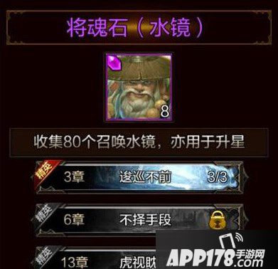 2.征战精英关卡可以掉落将魂石。分别为:精英3章-逡巡不前、精英6章-不择手段 、精英13章-虎视眈眈。