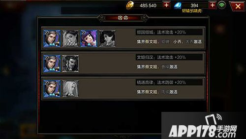 另一个宿命“精通音律”是与周瑜一起激活的,效果是“法术防御+20%”,当然这样的效果也可以在一定的情况下选择。比如PVE中某一关的BOSS是法伤大能,很难打通的情况下可以选择这个宿命加强生存,毕竟活着就有输出。