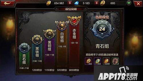 群雄争霸存在积分和段位排名,并且有着严格的积分区划制度。整个排位分为青石、铁黑、黄铜、白银、赤金五个组,每个组都需要玩家达到指定积分才能晋级。对于热衷Moba玩法的玩家来说,你的目标肯定不是局限于青石、黑铁。