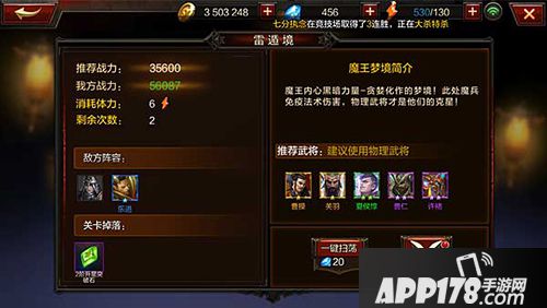 装备升星必须使用到的“升星突破石”,就产自于《全民无双》魔王梦境玩法的雷遁镜副本中。那么这个副本怎么玩,武将要怎么搭配?
