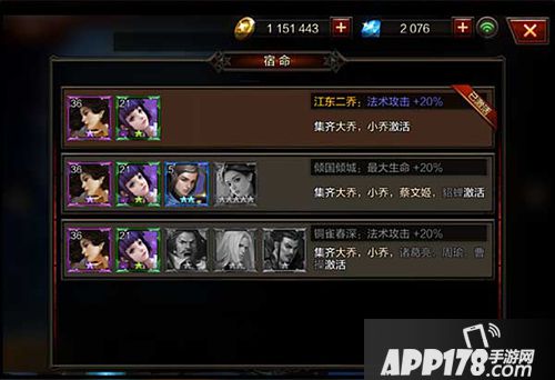 【江东二乔】集齐大乔、小乔激活,可提升法术攻击20%
