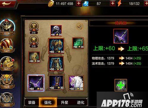 装备系统是主公穿戴装备、强化装备、升星装备和进化装备的地方。装备分为武器、战靴、坐骑、铠甲、头盔、护甲、军印、佩玉八件。强化升星到一定指标时,可以解锁装备强化共鸣和升星共鸣,提高装备属性加成。每件装备的品阶分为白色、绿色、蓝色、紫色、橙色和红色。通过装备进化,可以提高装备的品质到下一个阶段。稍差的装备可以用来分解,获得进化石和大量金币。在获得属性更好的装备时,可以直接继承原穿戴部位装备属性。