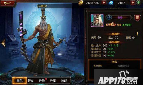 【天窍】(被动):永久提升左慈的法术攻击。属性光环,永久提升1230法术攻击,每级提升30法术攻击。不得不说这个被动技能相当给力,一次性让左慈的输出达到逆天水平。