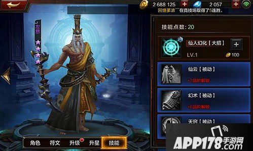 【仙云】(被动):使用仙人幻化后短时间提升左慈的武力、统帅、智谋。属性光环,提升0.2武力、统帅、智谋(15秒),每级提升0.2武力、统帅、智谋。这个技能可以说是让左慈瞬间变身全能王,全属性的增加,几乎能物能法,战斗力爆表!