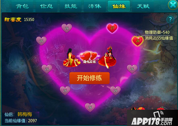 2)仙缘修炼消耗的仙缘值来源:结缘后,双方亲密度即为初始仙缘值,结缘后每增加1点亲密度,双方都能获得1点仙缘值。