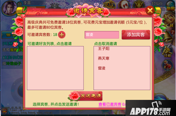 3、若要邀请更多的宾客,可花费5元宝来增加1个邀请宾客的名额。