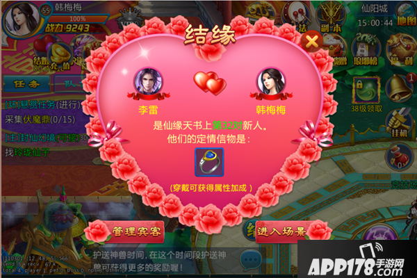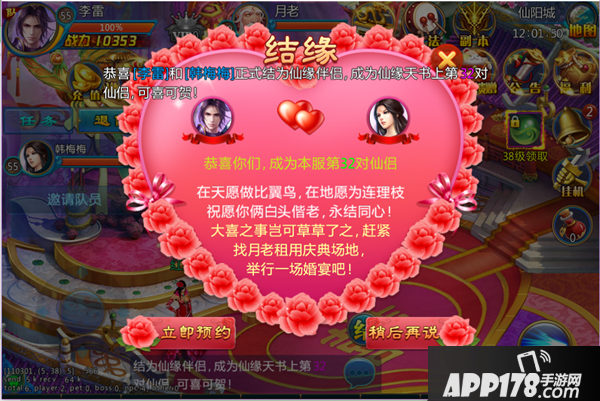 3、双方组队前往仙阳城-月老先处,队长(男方)支付584520银两作为登记费用发起求婚,女方同意即可结成仙缘