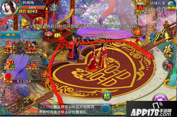 1、双方进入庆典场景后,1分钟自动开始拜堂仪式,也可点击“结缘仪式”手动开始拜堂。