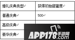 1)双方初始的甜蜜度为庆典结束时的甜蜜度,若不举行庆典,初始的甜蜜度为0,若举行庆典,则在庆典结束后根据庆典类型赠送不同的甜蜜度