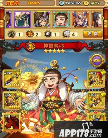 出战顺序为:5垃圾将,诸葛亮,鲁肃,郭嘉大家看到战力其实均不高,法宝也控制在平民程度,只是我的资源一向这样比较分散;其实正是因为分散的资源,而让我前面的输出更稳定,所以只用打2个小时就能过关,我正常打最后一个将基本都是只打1/5的血到3/5的血之间,变红的几率一般是20次可出现一次,变红主要是郭嘉发力,所以只要前面再给力一点或者郭嘉再给力一点基本就能过,我打出变红的次数大概不超过8次。