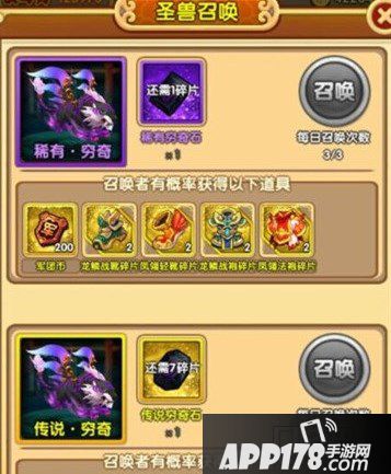 主公们在供奉圣兽的过程中,有几率获得各种圣兽石的碎片,集齐一定数量后,就可以召唤圣兽进行挑战。