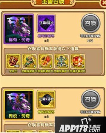 主公们在供奉圣兽的过程中,有几率获得各种圣兽石的碎片,集齐一定数量后,就可以召唤圣兽进行挑战。