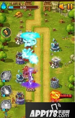 好了,闯关开始了!小编从头到尾都是一直鼓舞寒冰塔的,这就是为什么说冰塔显神威的原因啦!寒冰塔的单体输出高,而且还带减速功能,这对这关的怪物来说简直就是噩梦,这关的敌军不算太多,而且速度快,利用寒冰塔对付它们正好是对症下药吧!这关的技巧就是只要它在寒冰塔的射程之内,就义无反顾的鼓舞寒冰塔就ok了!相信大家很快就会三星通关的!