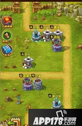 阵容搭配:抛石塔*3+唤雷塔*2+寒冰塔*2+弩弓塔*1