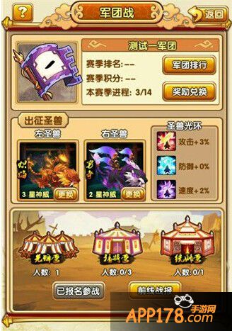 2、只要军团的成员才可以报名参加军团战哦。