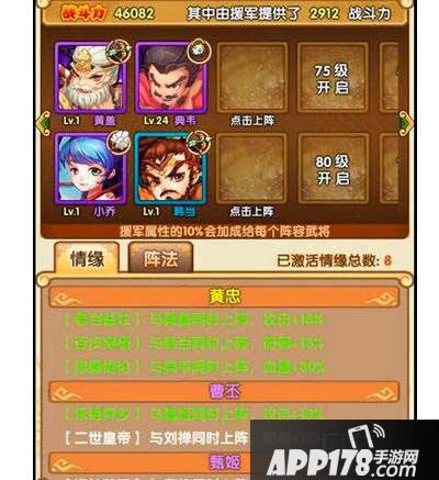 可以看到黄忠所需要的三个情缘武将非常简单,可以说更新后立马能搭配出来,所以在我看来黄忠不但是平民武将中最优秀的弓,也是最容易配出3情缘的武将。