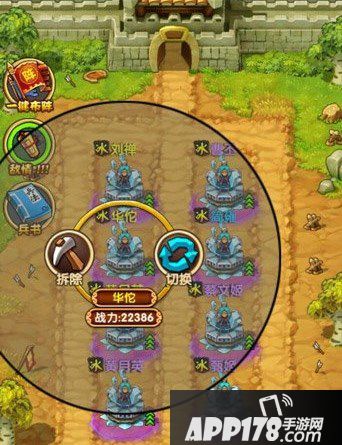 1、将的位置:左边4个将战力最高,依次为华佗2W2、月英2W05、月英(紫)1W9、刘禅1W9,右边4个将右下最高即可,注意最下面2个将的技能要有冰效作用;