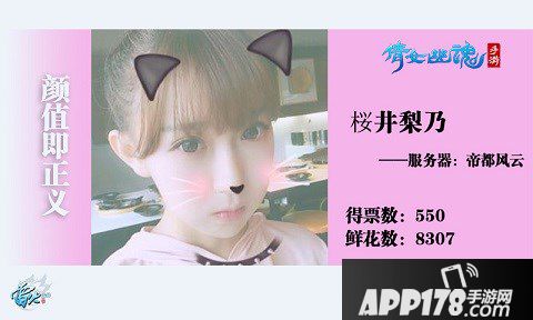 古风唯美的《倩女幽魂》手游,一向以超高的颜值著称。颜值超高的手游,会自然地吸引到颜值高的玩家,盛世美颜的杨洋同样也不例外。本次主题榜单#颜值即正义#,就为少侠们提供了比拼颜值的舞台。来自帝都风云服务器的桜井梨乃,就以550票和8307朵鲜花的超高热度,摘得了#颜值即正义#榜单的桂冠,获得了美图手机一部!