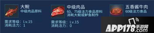 如果你初入三界,“从零开始”,那么这里老司基推荐“大鲵—中级肉品—五香酱牛肉”这条法力食品路线。
