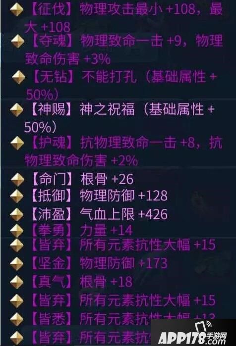 装备建议词条:物理最大攻击,物理致命一击,神赐、无钻、不可修,技能等级+2,力量。