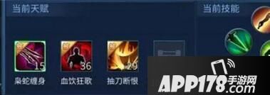 天赋推荐:【枭蛇缠身(心魔定身效果)】,【血饮狂歌(回血效果)】,【抽刀断恨(提高致命几率和伤害)】。