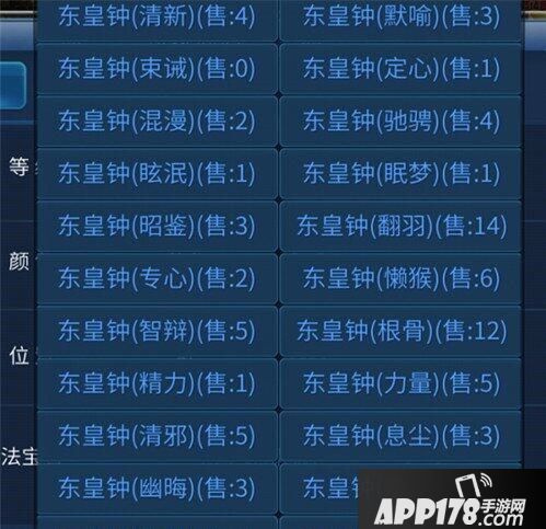 本周更新说要开放回收蓝色法宝活动!因为,没赶上,上周更新红利的我,看见此消息后立马关了论坛,进了游戏,打开易市点开蓝色法宝栏乾位置,看见一大波还未购买的蓝色法宝,大概是这样的。