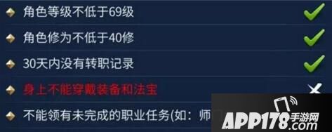 转职后修为为0,角色转前职业技能和天赋全部清空,且自动领悟当前等级可以自动领悟的技能,需要技能书领悟的技能全部为0级。(60修以下返还90%原职业升级技能花费;60修及以上返还100%。)