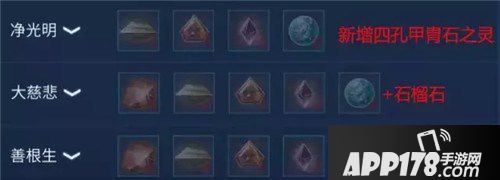 Tips:净光明 (新增)、大慈悲、善根生为一个甲胄石之灵系列。