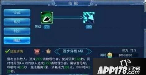 绝技尽量加高,70绝技百步穿杨伤害不是很高(这次更新加强了命中),就是先手沉默对方。100绝技箭雨流星需要持续释放,除了混分,觉得有点不太理想。