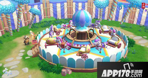 新建成的游乐场中不仅有着阿怡多年苦心研制的旋转木马、小黄鸭小船等玩具,还有喷泉水池、超大型的环园滑滑梯等十分齐全的游玩设施。在考官布偶猫阿怡的监督下,“带娃实战”中玩家需要乘坐小黄鸭小船来到游乐场;还可以体验场景内的旋转木马和有趣的套圈玩法。