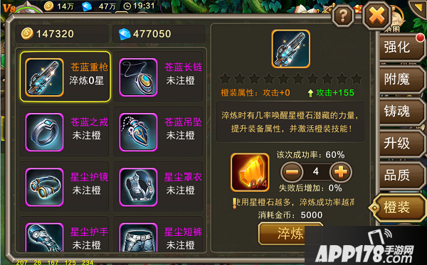 橙装是装备比较高级的追求,需要装备等级达到50级,以及消耗珍贵的星橙石。橙装后的装备基础属性得到大幅提升,同时还将额外增加一条属性。正如前文所说,升级和橙装是仅有的两个直接提升基础属性的系统。这意味着连同品质和神装提升的属性都会一并得到增幅!