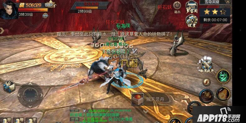 二,通关技巧通关此副本,也是要打游击战,边打边退等回复等技能CD,前面我就不说了,大家在打到副本,出现剧情提示走到绝路以后,你不要停,一直往地图尽头跑,这个时候Boss巨石妖会在原地,不会过来找你,把地图前面的小怪异界天兵打死,等CD,再过去把Boss旁边的小怪打死,尽量别让Boss近身晕倒自己,技能打完就跑,等CD好了在上。