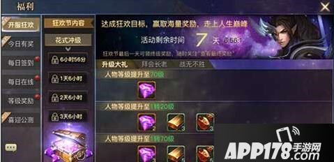 n升级大礼:将角色等级提升至指定等级,即可领奖;