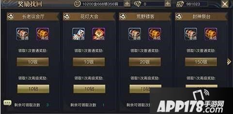 游戏提供了2种找回方式,游戏币找回和钻石找回,使用钻石找回将能够获得高于游戏币找回的玩法奖励,但如果玩家要获得最大奖励,还是需要每天实际参与玩法,所以一定要在万不得已的情况下使用哦。
