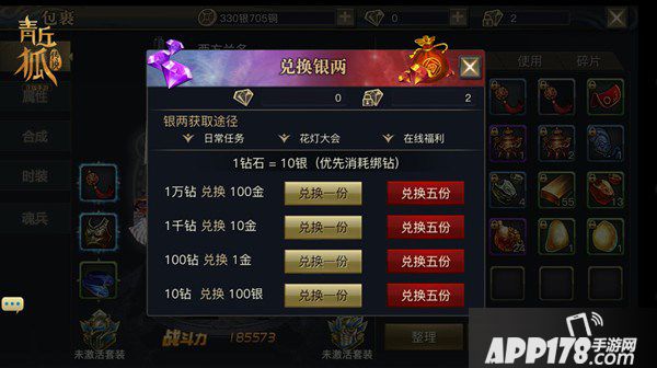 兑换银两比起前面四个银两获得途径来说,其操作更省心省力。只需打开包裹,点击银两。轻松换取。值得一提是优先消耗绑钻!还不赶紧兑换!
