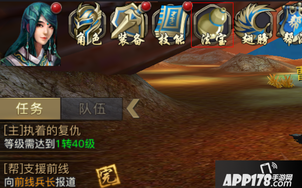 在开启该功能后,玩家可在主界面内点击角色头像,在展开的菜单中点击”法宝“按钮后进入该系统。