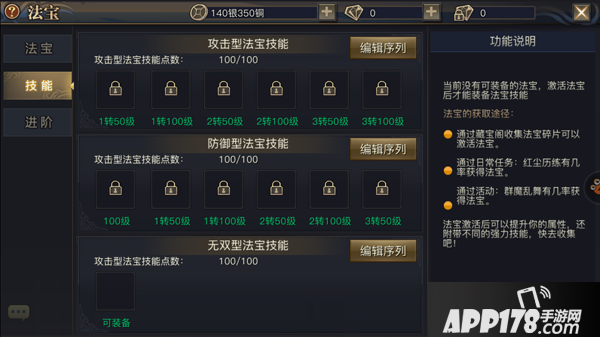点击“编辑序列”按钮后,进入法宝装备界面。